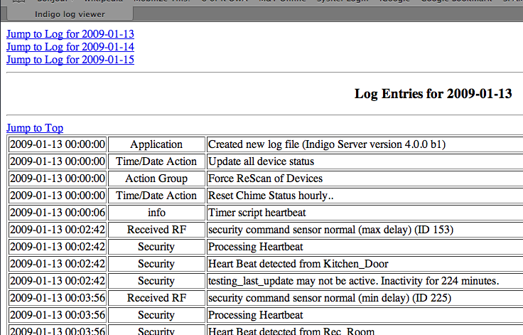 The Indigo Remote Log Viewer is a plugin for the Indigo server that allows you to view the log through any web browser. The only Caveat is that you must, of course, have the Indigo Web Server turned on….